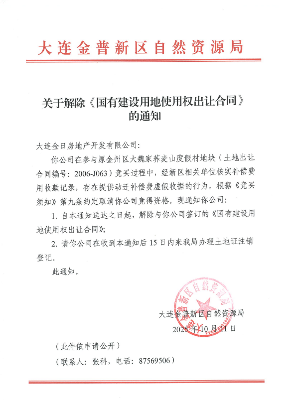 关于解除国有建设用地使用权出让合同的通知.pdf