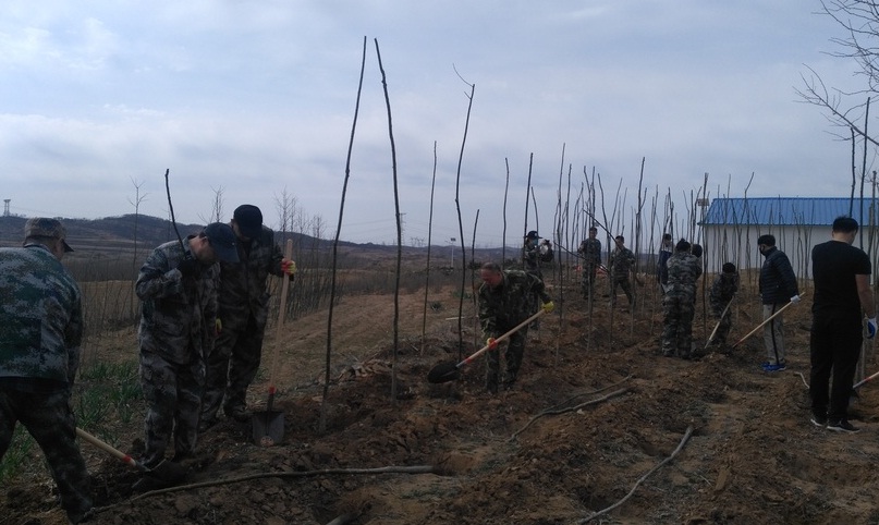 4月12日上午9:00,在岔山村亮丰苗圃的植树现场,50余名志愿者们自发结组,各有分工,女同志负责运送树苗,男同志负责挥锄挖土、扶苗填坑、挥锹培土和夯实土层,义务植树活动如火如荼地进行着。