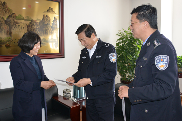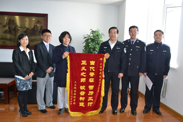 4月19日上午,大连韩国国际学校校长梁美淑一行到开发区公安分局赠送锦旗和感谢信,对该局大孤山派出所和交警大队长期以来,对该校扎实细致的安保工作表达了诚挚的感谢和敬意。分局政委迟长海接待梁美淑一行,并表示将一如既往做好校园安保工作。
