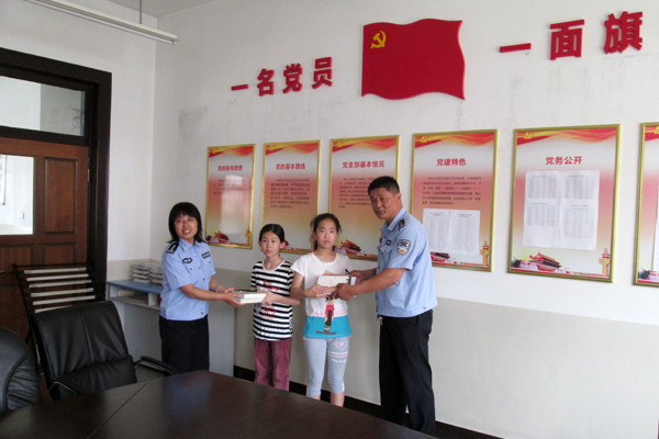 “六.一”儿童节前夕,开发区公安分局哈尔滨路派出所所长陈志强、教导员高玉江,带领民警到西山小学看望贫困学生,带去了学习用品,了解孩子们在校学习情况,勉励她们刻苦学习,自爱自强,做全面发展的好学生。