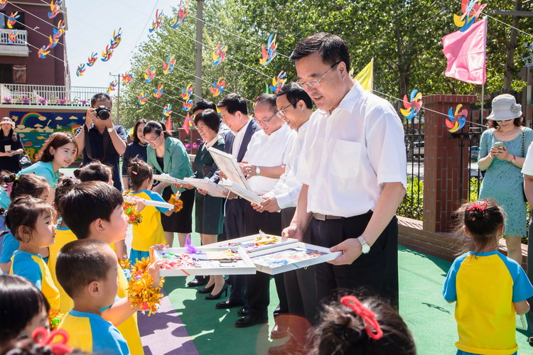 在“六一”国际儿童节当天,金普新区、区政府人大、政协领导张世坤、赵利民、李巍分别到开发区翠竹幼儿园、金州区第二幼儿园、开发区第一幼儿园看望小朋友和教师,为小朋友送去节日礼物和节日祝贺,向辛勤工作的教师致以诚挚的问候。