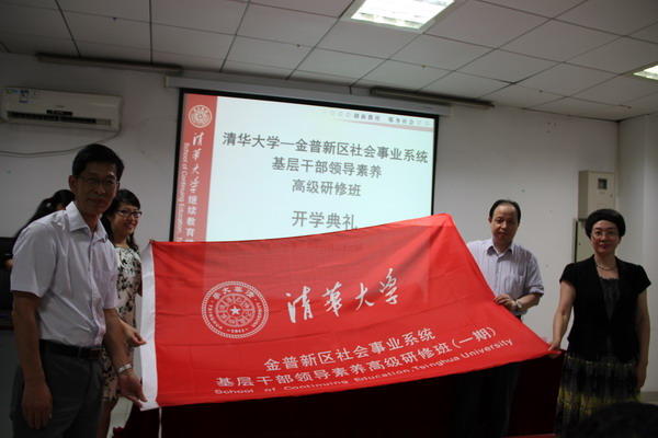 6月22日,社会事业局在清华大学继续教育学院隆重举办“清华大学—金普新区社会事业系统基层干部领导素养高级研修班”一期班开班典礼。清华大学继续教育学院郭钊副院长致欢迎辞,金普新区社会事业局副书记、副局长孙爱玲做动员讲话,市民健身中心主任丁善艺代表全体学员发言,典礼上还举办了授班旗和佩戴校徽仪式。局领导王玮、姜峰及清华大学继续教育学院培训部吕丹主任也出席了开班典礼。