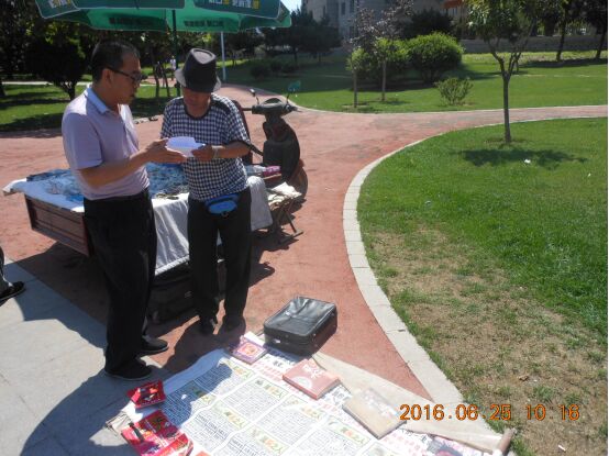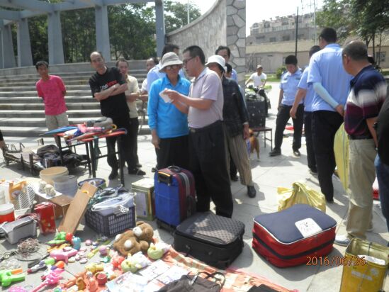 6月26日9时整,全体文化市场综合执法人员对北大河旧物市场经营摊点进行全面清查,坚决查处非法出版物,行动中共计出动人力35人次,清理地摊游商28处,收缴非法出版物1500册,音像制品300盘,收缴非法刻录歌曲光盘200张。