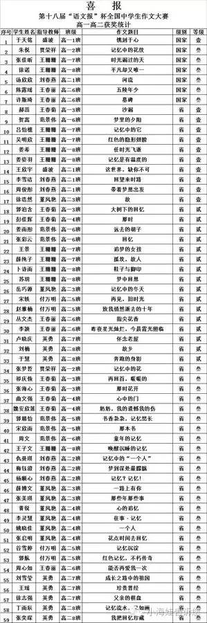近日,开发区八中学生参加第十八届“语文报杯”全国中学生作文大赛收获颇丰。在本次初赛中,学校高一、高二有59位同学获奖,其中有7位同学获国家级奖项,于天铭同学以国家一等奖的成绩入围“高考读写集训营暨第十八届‘语文报杯’全国中学生作文大赛现场决赛(颁奖)”。因“在践行新课改事业和推进作文教学改革方面取得卓著成效”,开发区八中被授予“全国作文教学优秀单位”。开发区八中多年来一直重视语文作文教学,每学期都召开各个年级的作文指导讲座,邀请校内外名师对学生的作文进行指导。学校语文教学不断进步。