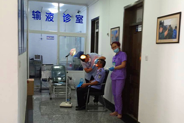 刘国林主任对常见的牙周疾病,刷牙方法等常见口腔日常护理问题进行了宣讲,对民警们提出的各种口腔问题进行了耐心细致地解答。并对一些长期吸烟、喝茶导致牙结石的民警进行洗牙治疗,对平时牙痛剧烈的民警进行诊治。