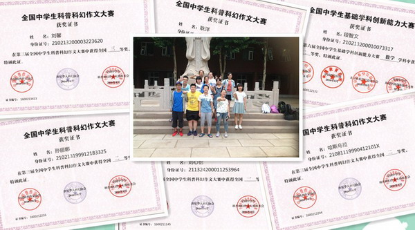 在2016暑假,大连市103中学优秀学子赴北京参加中国科普作家协会、世界华人科幻协会主办的 “2016年全国中学生科普科幻作文夏令营暨第三届全国中学生科普科幻作文大赛”。经过为期4天的夏令营比赛活动,103中学卢程程、刘心怡获得全国一等奖,孙丽娜、哈斯乌拉、耿洋获得全国二等奖,刘馨、张青岚获得全国三等奖,王慧获得全国优秀奖。在全校语文教师的精心指导下,103中学连续三年获得“全国科普科幻作文大赛优秀生源基地”称号,这是103中学“自主发展、智慧育人”特色建设工作取得的又一阶段性成果。