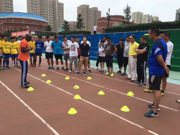 8月8日新区校足办邀请教育部选派的荷兰籍足球教师的Atto mensah教练在开发区一中对所有校园足球教练员进行了专业培训,新区教练员零距离体悟来自荷兰的足球理念、方法。