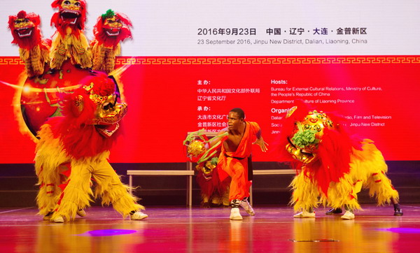 2016年9月23日下午,中非文化聚焦•舞狮培训班成果汇报展演活动在大连金普新区文化馆成功举行,为期5周的舞狮培训画上了圆满的句号。辽宁省文化厅外联处处长舒晓燕、金普新区社会事业局副局长姜峰、大连市文化广播影视局艺术处副调研员吕克岩等相关领导出席了本次活动。