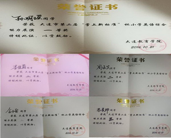 本次比赛后续选派两个区域代表参加大连市“情境主题英语”展演,红旗小学的英语歌曲《Proud of you》被选中,该节目荣获最具风采奖。金石滩实验学校中学部选送的电影配音《Frozen》荣获最佳表演奖,小学部选送的英语歌舞《DO RI MI》和中学部选送的英语演讲《I have a dream》荣获优秀节目奖,学校荣获最佳组织奖。