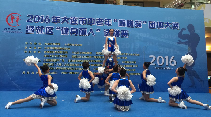 2016年10月29日下午1:00,由大连市体育局、大连市体育总会主办,大连市健美健美操协会承办的2016大连市中老年“啦啦操”暨社区“健身丽人”选拔赛在大连市和平广场如期举行。