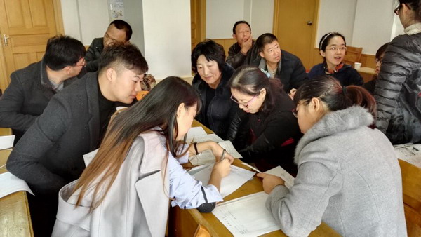 萧伯纳说:你有一个苹果,我有一个苹果,交换一下,一人还是一个苹果;你有一个思想,我有一个思想,交换一下,一人就有两个思想。韩老师还利用具体事例和老师们一起交流了关于概念建构下的教学目标预设写法,组成条件等,使科学老师们对创新备课表的使用更加清晰明了。培训后,参会教师自由组合分成了18个小组,每个小组根据本次会议所理解的内容自选一课教材进行了现场备课,大家一起将心中存在的疑难问题进行深入的研究讨论,教研氛围十分浓厚。
