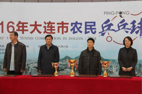 2016年11月11日,由大连市体育局主办金普新区社会事业局承办的“2016大连市农民乒乓球比赛”在金普新区市民健身中心举行。大连市体育局吴华副局长、群体处闫安处长、金普新区社会事业局高奇志局长、许欣副局长出席开幕式。