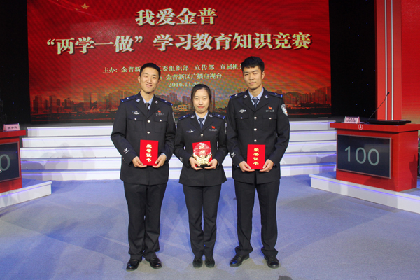 开发区公安分局领导高度重视此次活动,由该局政治部门认真组织选拔,抽调基层所队李优、郑晓凡、魏丛姝等3名民警参加预赛,并从全区68个单位中脱颖而出,进入决赛。11月25日,3名参赛同志在新区“我爱金普”两学一做学习教育知识竞赛决赛中奋力拼搏,获得三等奖,为单位赢得了荣誉。