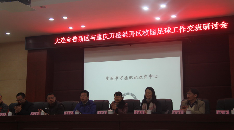 在万盛经开区局领导及教师的盛邀之下,新区实验小学杨坤老师、108中学徐伟老师即时做课,为万盛区的体育教师展示了两节足球训练课。同时,金普新区校园足球办公室主任李长君也应邀做了《让足球之花开遍校园》的新区校园足球工作经验介绍,并接受重庆市万盛区电视台的现场采访,对两区校园足球未来的合作发展充满希望。两区领导、教师在校园足球工作开展,校园足球文化体现、足球课、训练课传授等方面进行了友好、深入地讨论。