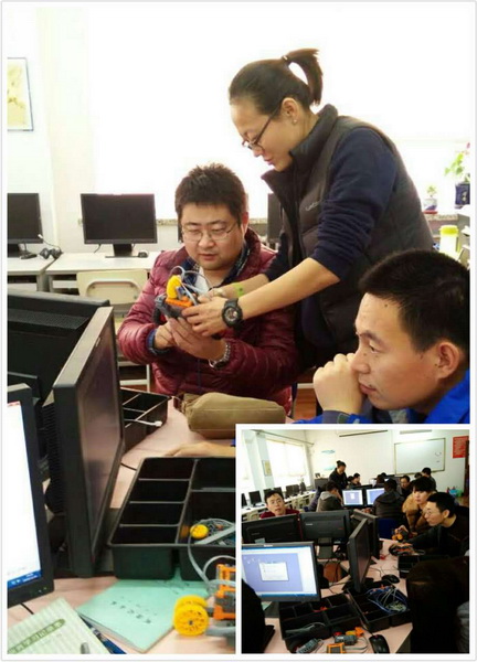 王卓老师培训的教育机器人结构搭建与程序设计主要展示机器人部件、程序编写及实现的过程。从比较简单的执行模块到传感器设计实现,设计多个创意小程序,难度适宜,参与教师积极编写程序、动手搭建。孙萌向观摩教师介绍了3D打印机器的功能及操作方法,并结合具体事例使用3D编辑软件设计不同结构3D图形,再通过3D打印机将设计好的作品呈现出来。大家兴趣浓厚,积极动手尝试,最后打印出各种新奇的作品。王春胜主任及程宪冬老师为参与机械电子创客技术培训的教师展示了目前信息技术教育中先进的创客技术。介绍开源硬件与软件的使用方法。活动中大家积极动手实践,深切感受到信息时代新技术的发展给我们的学习和生活带来了日新月异的变化。