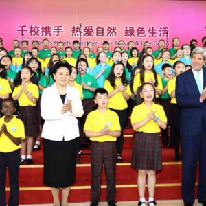 中美“千校携手”项目是第五轮中美人文交流高层磋商联合成果,由副总理刘延东与美国国务卿克里于2014年7月在北京正式宣布启动。该项目旨在遴选中美1000所具有一定交流基础的中小学共同参与中美人文交流活动,在今后一段时间内,以环境保护、绿色生活为主题,积极开展师生交流、课程科研合作、学生社团共建等活动。
