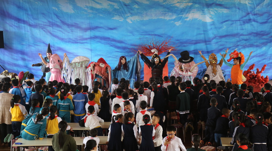 儿童剧《海洋总动员》契合金普新区地理环境和学生的生活环境,将海洋环保主题教育与童话故事巧妙融合,集观赏性和思想性为一体,以载歌载舞的表演形式,用生动的语言、精美的造型、形象的表演将剧情呈现得唯美生动。演出过程中,演员老师们与学生们进行了精彩互动,艺术家们精湛的演技、生动的语言、精彩的情节巧妙地将“海洋环保”理念植入海娃们的心田,润泽海娃们的心灵。