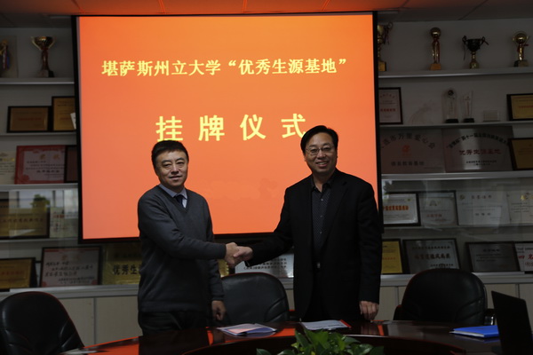 堪萨斯州立大学成立于1863年,系美国一类公立大学,总校区位于堪萨斯州曼哈顿市。学校在建筑,工程,食品,航空,教育,商科、农学、艺术等专业全美处于领先地位。堪萨斯州立大学多项排名全美前十,建筑设计专业仅次于哈佛大学全美排名第二。堪萨斯州立大学篮球队是全美大学生篮球联赛强队,称霸中西部篮球联赛,并多次进入全美大学生篮球联赛总决赛。双方负责人签署了合作协议,并举行了授权挂牌和交换校旗的仪式,两校将在多个项目中为开发区一中的学生提供多种出国留学的选择。