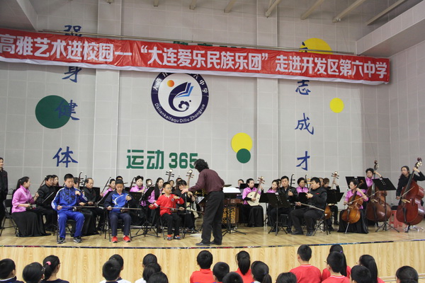 我区艺术教育始终关注各所学校民乐队的发展,在金普新区历届文化科技艺术节器乐大赛中,民乐演奏始终占据举足轻重的地位。开发区第六中学等学校民乐队在省市大赛和国内外交流演出中日趋成熟、不断壮大,已经成为学校艺术特色文化和金普新区艺术教育靓丽的名片。此次“爱乐民乐艺术家进校园”活动让正在着力进行民乐校本课程开发和将民乐作为学校艺术特色品牌发展的各所学校受益匪浅,让更多的孩子在校园就享受到了高端的民乐艺术演出,在提高学生艺术综合素养的同时,有效促进金普新区学生们将中华优秀传统艺术形式的传承下去,发扬光大。