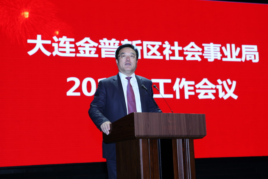 2017年1月14日,大连金普新区社会事业局2017年工作会议在开发区大剧院召开。金普新区党工委书记、管委会主任张世坤,金普新区党工委委员、管委会副主任宋振民,金普新区党工委委员、区组织部部长丛军,金普新区党工委委员、区纪工委书记秦淑华,金普新区党工委委员、区宣传部部长柳金红,金普新区党工委委员、政法委书记李鹏业,区人大常委会副主任徐晓莉,新区两委办、人社局、总工会、共青团、妇联、以及区人大教科文卫、区政协文法委的领导以及社会事业局班子成员、老干部代表、驻区专家组、局属各单位副职以上领导、社会事业系统后备干部代表、功勋班主任、局机关全体和新闻媒体的朋友共约1200人参加了会议。