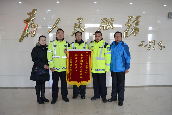 1月19日上午,两名病人所在的企业负责人为交警大队送来锦旗表示感谢,对交警大队及广大执勤民警全心全意为人民服务的敬业精神和工作作风表示敬意。