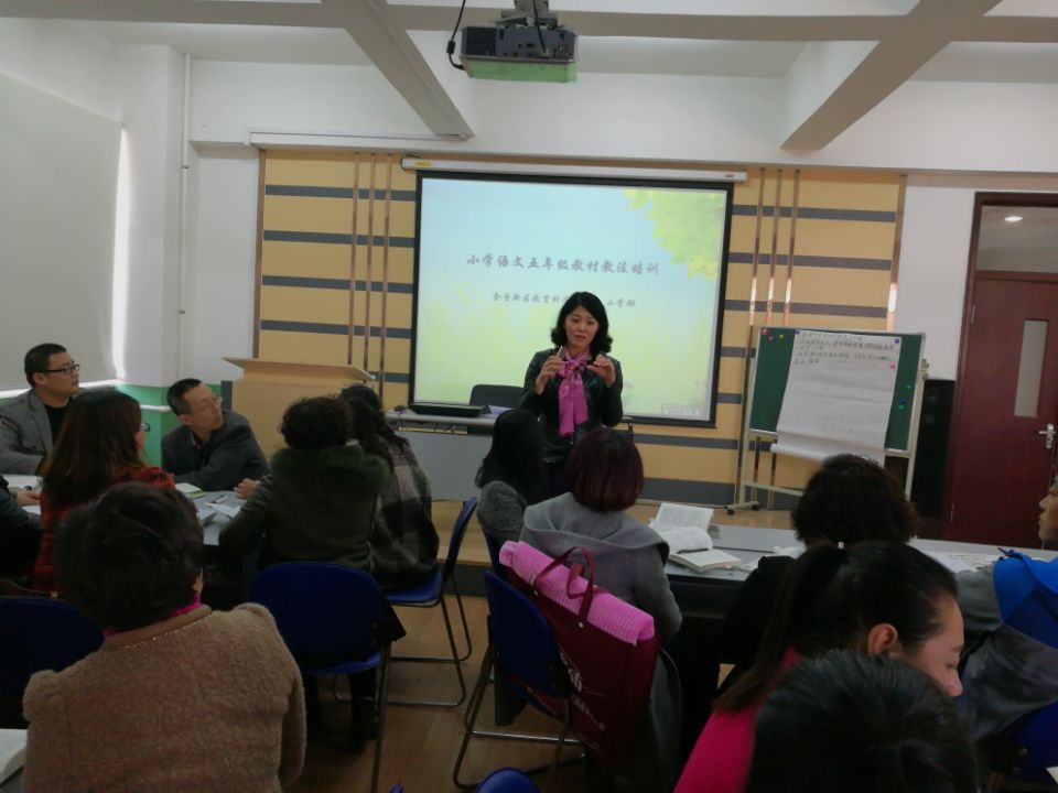 3月23日下午,金普新区小学语文五年级教材教法辅导培训活动在石河小学举行。基地校三组10所学校的所有五年级语文老师40余人参加了此项培训活动。