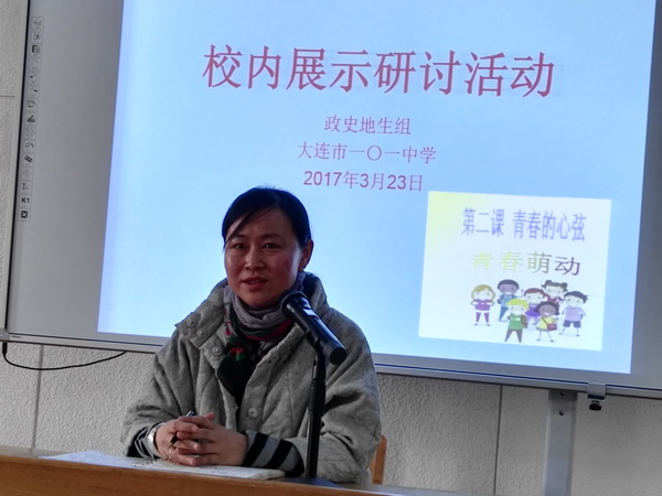 3月20——24日,大连市教育学院道德与法制教研员张雪梅老师在新区教科院中学部学科教研员关正强老师陪同下,用了一周的时间对大连市101中学进行了调研。在对每一个学科老师的授课都有针对性的指导和点评后,3月23日,101中学刘立新老师上了一节《青春萌动》的公开课。学校领导、政史地生老师和班主任参加了观摩。