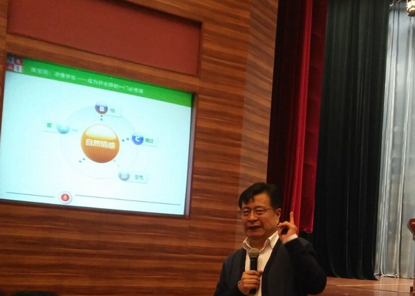黄宝国专题报告名为《读懂学生——成为好老师的一门必修课》。他从其实懂你不容易;好老师的专业标准;读懂学生的基本策略;关于基础教育发展的理性思考四个方面做了极为精彩的报告。做为全国“差点教育”的创立者,他从尊重差异、研究差点、缩小差距、共享差别四个方面,深入浅出、有理有据地剖析和解读了什么是真正的差点教育,什么才是真正的读懂学生、尊重学生、真爱学生。他强调,基础教育重在夯实“三底”即底线、底色、底蕴;教育改革要走向“三个回归”即回归常识、回归本分、回归初心;基础教育要坚持“三个自信”即中国自信、教育自信、自我自信。黄老师的专题讲座就如一场精彩的故事会,他用饱满的情绪、亲和的态度、幽默的语言、智慧的风度讲述着一个个令人动容、茅塞顿开的教育故事,这些故事给了与会人员教育的洗礼、心灵的震撼、生活的顿悟。会场上一次次想起热烈的掌声,与会人员一次次被黄老师精彩的演讲感染着、感动着、温暖着……