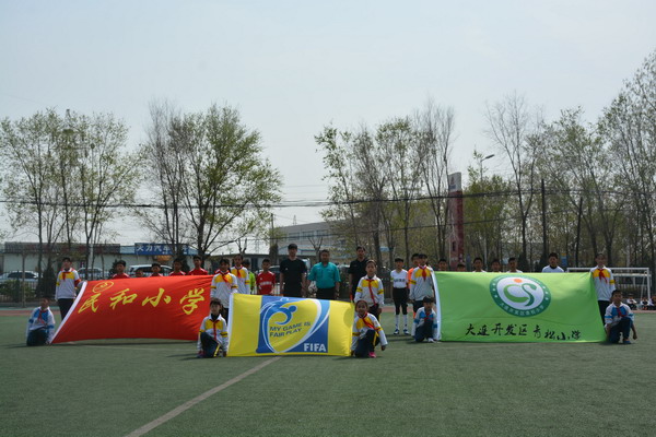4月21日,伴随着小学男子组最后一场比赛——青松小学与民和小学冠军争夺战比赛结束哨声的响起,金普新区中小学2016-2017学年小海娃“区长杯”校园足球超级联赛完美收官。社会事业局局长高奇志、副局长宫学莉继为揭幕战开球之后再次亲临现场为联赛最后一场比赛开球,并全程观看比赛,为孩子们加油助威。