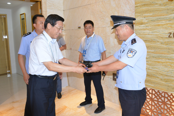 6月26日下午,开发区公安分局政委迟长海来万达希尔顿和康来德酒店,代表分局督导检查“达沃斯”论坛住地安保工作,并看望慰问坚守岗位的执勤民警。