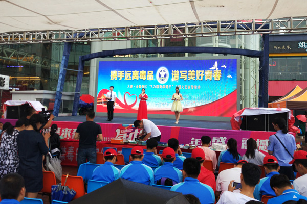 为深入贯彻落实中央和省委省政府有关加强禁毒工作的整体部署,推动全区“6?27”工程的深入开展,积极构建青少年禁毒工作常态化、社会化新格局,6月24日上午,在第三十个国际禁毒日到来之际,由大连金普新区禁毒委、大连开发区禁毒办主办,开发区公安分局禁毒大队联合开发区职业中专、马桥子街道承办的以“携手远离毒品、谱写美好青春”为主题的大型禁毒宣传文艺汇演在安盛广场隆重举行。