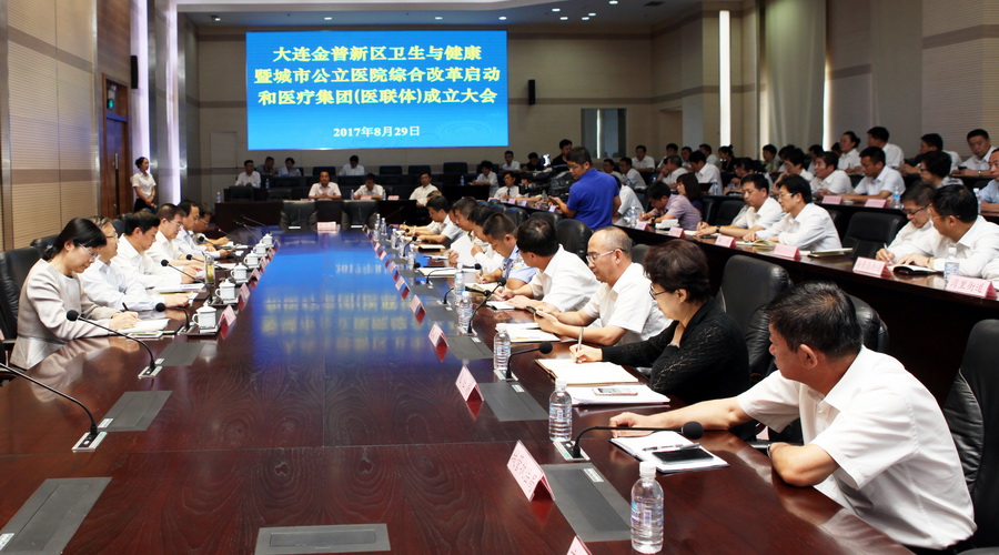 8月29日,大连金普新区卫生与健康暨城市公立医院综合改革启动和医疗集团(医联体)成立大会在新区管委会八楼会议室举行。会议全面贯彻党中央、国务院关于深化医药卫生体制改革的重大决策部署,落实习近平总书记系列重要讲话精神及全国和省、市卫生与健康大会精神,动员部署城市公立医院综合改革工作,组建成立医疗集团和医联体。市委常委、金普新区党工委书记、管委会主任王强,大连市卫生计生委主任刘金涛,管委会副主任王会军,管委会副主任宋振民,金州区人大常委会副主任徐晓莉,金州区政协副主席张俊余及管委会各相关部门、各街道、各医疗机构领导总计140余人出席会议。