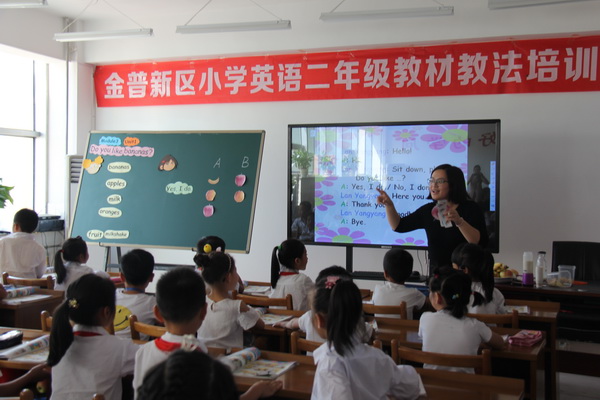 9月7日,金普新区小学二年级英语教材教法培训活动在湾里小学举行,开发区近40名教师参加活动。本次培训由教科院张敬峰老师负责。