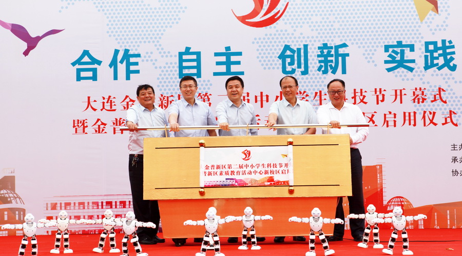 9月22日,大连金普新区第二届中小学科技节开幕式暨素质教育活动中心新校区启用仪式在金石滩举行,辽宁省教育厅义教处处长宋升勇、省教育研究培训中心主任孙岩、大连市教育局副局长鞠振伟、义教处处长王长青、副处长马振凯、新区经济发展局副局长崔家玉副、新区科学技术协会秘书长郭仁勇、新区社会事业局局长高奇志及各相关副局长、处长出席活动。