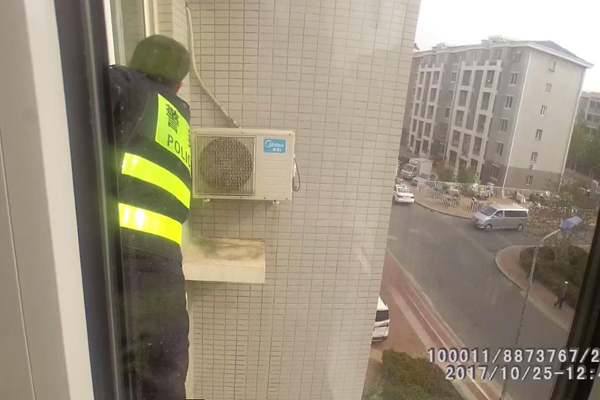 经现场查看,民警发现该小区一座高层建筑的三楼窗户内冒出浓烟。据报案人张某描述,其中午做饭时出门倒垃圾,因忘了带钥匙将自己反锁在门外。由于没有关闭燃气灶引起厨房起火,不久火势已经蔓延至卧室。鉴于情况紧急,民警没有考虑个人安危,迅速赶到着火点的隔壁,顺着窗户徒手爬至冒着浓烟的房间,将正在燃烧的燃气灶关闭,迅速扑灭明火。
