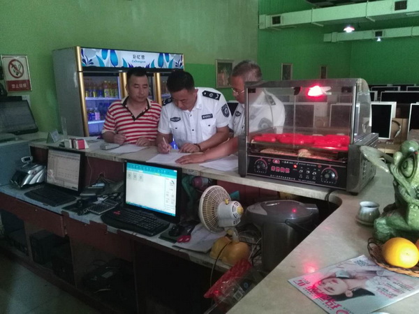 大队领导把此次十九大安全保障工作当做重大政治任务,站在全局的高度,结合新区实际,按照“全覆盖、零容忍、严执法、重实效”的要求,依托大队构建的“四队一组一室一中心”管理体系,依据监管区域、职责任务,领导带头,全员参与,如火如荼的全力开展文化市场迎接十九大安全保障工作。实际工作中,“干”字当头,加强对新区范围内演出场所、娱乐场所、网吧、艺术品市场、印刷企业、教育市场及网络巡查监管。带班值班领导亲自带头,亲赴市场,亲自到场所进行检查,确保安全问题不留死角,做到安全工作无缝隙。同时依据大队构建“网衣式安全管理工作模式”进行拉网式检查,全面排查并消除各类安全隐患。10月17日,大队进行党支部换届选举,产生新的党支部班子成员,更加焕发出生命力和战斗力,新的党支部班子成员以更加饱满的工作热情带领全队,锐意进取,奋发有为的姿态战斗在文化市场执法第一线。自9月26日以来,新区文化市场安全保障工作共计检查、巡查场所241家次(网吧:87,书店:24,娱乐场所:38,印刷企业:10,艺术品市场:2,教育市场:25,网络巡查:55)。在检查的同时,利用建立的网吧微信管理群、娱乐场所微信管理群、稽查之家微信管理群反复播报通知,始终保持高压态势对市场的监管,做到心中有大局,市场安全无小事,做到执法有痕迹,件件有落实。