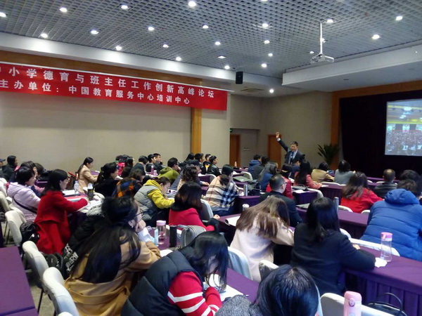 2017年11月18日,全国中小学德育班主任工作创新高峰论坛在杭州举行,金普新区8名小学、幼儿园功勋班主任参加了本次论坛。论坛上,杭州市公益中学校长潘志平校长将“亲情”概念广义化为联系学校、家长、学生三者之间的情感纽带,注重营造温馨和谐的人文环境,从而促进学生们快乐学习、健康成长,在高分与育人之间取得了巧妙平衡的德育构建体系。古人云“君子之学也,入乎耳,箸乎心,布乎四体,形乎动静”。认真学习交流,积极记录分享,人人受益匪浅。各位功勋班主任将在自己的德育工作道路上更加坚定从容得走下去。