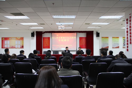 白明春副教授从国家层面对十九大的重要成果和十九大报告主要内容进行了解读。他用“充分民主、高度开放、气氛热烈、格局大气”4句话对十九大进行了概况,围绕“中国特色社会主义新时代、新征程、新作为”这条主线,介绍了5年来的历史性变革、新时代的内涵和意义、新时代我国社会主要矛盾的变化、新时代中国共产党的历史使命、新时代党的指导思想、新时代国家的发展战略目标、新时代各方面工作的战略部署和举措、新时代中国共产党的自身建设等8方面内容,系统生动、内涵丰富,中心党员深受启发。
