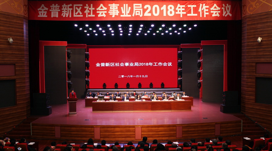 1月19日上午, 金普新区社会事业局2018年工作会议在区市民文化活动中心召开。金普新区管委会副主任张洪光、区人大常委会副主任毛长毅、区政协副主席阎立明、社会事业局局长高奇志及领导班子成员、各街道分管领导、社会事业局系统以及驻区专家组、老干部代表、民办普惠性幼儿园代表、校车公司和校餐公司负责人等500余人参加了此次会议。会议由社会事业局副书记、副局长孙爱玲主持。