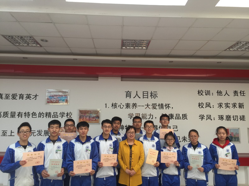 在2017年第三十一届全国中学生化学奥林匹克竞赛中,开发区一中孙铭君、姜人毓、夏亮、于斯琪四位同学获得国家级二等奖,徐博文获得国家级三等奖,刘丰熠、刘芷彤、徐慧卿、田松原、吴博文、金一泽等十三名同学获得省级一等奖,苏冰老师荣获优秀指导教师称号。 近年来开发区一中在学科竞赛中屡获佳绩,本次化学竞赛获奖,使得学校学科竞赛又添一面靓丽旗帜,相信开发区一中学科竞赛将不断取得新成绩!