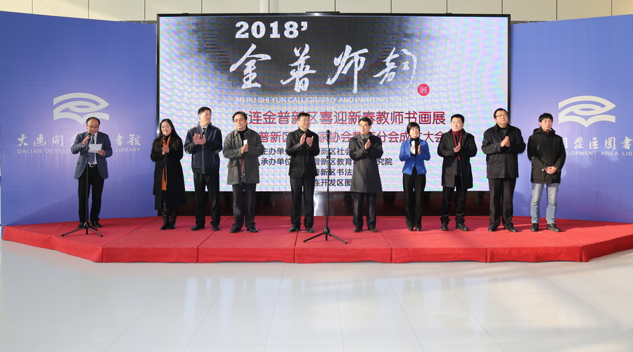 金普师韵,春华秋实。2018年1月17日,值此戊戌年春节来临之际,由金普新区社会事业局主办、金普新区教育科学研究院承办的2018年“金普师韵”喜迎新春教师书画大展隆重开幕,金普新区书法家协会教师书法分会即日成立。本次展览开幕式由教科院刘峰院长主持,参加开幕的领导和来宾有:金普新区党工委宣传部副部长、文联主席翁铭峰,金普新区社会事业局副局长姚志强,金普新区社会事业局副局长宫学莉,金普新区书法家协会主席傅玮,辽宁省青年美协主席常庆利,大连市教育学院美术教研员叶晓辉,金普新区书法家协会副主席宋世全,金普新区书法家协会秘书长夏明宇。参与活动来宾与教师300余人,这是金普新区传统文化艺术教育的一次盛会,更是金普教师丰厚文化底蕴的一次彰显。