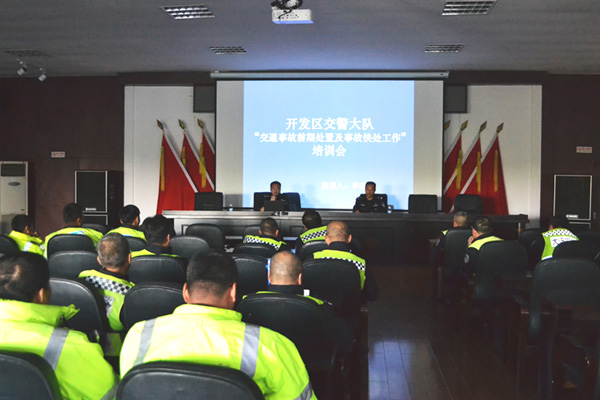 10月18日上午,开发区公安分局交警大队再次组织岗勤民警开展“交通事故前期处置及事故快处工作”系列专项学习。