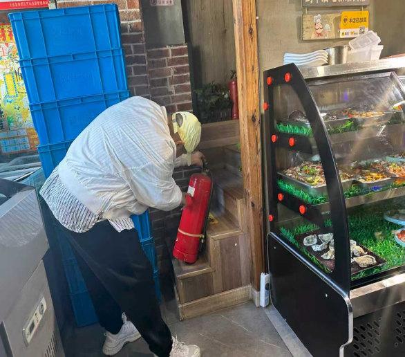 社区通过商铺微信群转发商务蓝码、燃气安全培训视频,上门走访检查等方式,向辖区商户普及安全生产重要性,明确燃气、燃油、电器使用规范及自查重点,引导商户主动排查隐患。行动中,社区按照网格分片对辖区所有商铺进行走访排查,重点核查是否有灭火器、是否过期、安全通道是否堵塞等安全检查。