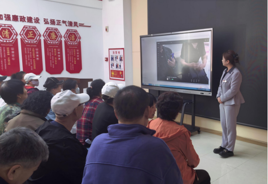 讲座中,银行工作人员以 “诈骗分子的‘小心思’” 为题,通过PPT展示、播放反诈短视频、现场模拟对话等形式,结合真实案例,让居民快速理解各类诈骗手段。