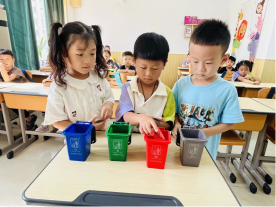 活动通过“垃圾分类小能手”游戏和“知识问答”互动等环节,巧妙地将分类知识融入趣味游戏之中。在“垃圾分类小能手”游戏中,幼儿园老师们带来了特制的垃圾分类教学道具,借助模拟垃圾桶模型和实物卡片进行演示,手把手指导孩子们辨识可回收物、厨余垃圾等不同类别。演示结束后,游戏正式开始,孩子们争先恐后地将手中的卡片准确投入对应的模拟垃圾桶内,每当投放正确,便会赢得老师和小伙伴们的热烈掌声与鼓励。随后是“知识问答”环节,现场气氛热烈非凡,孩子们脸上洋溢着好奇与兴奋,积极回答着老师的每一次提问,展现出对垃圾分类知识的浓厚兴趣和扎实掌握。活动结束后,仍有不少小朋友意犹未尽,主动向老师询问更多关于垃圾分类的知识。