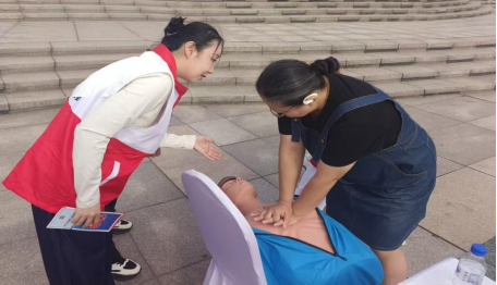 活动现场,来自红十字会的应急救护师资担任“主讲老师”。她们先结合真实案例,用通俗语言拆解心肺复苏的核心意义——在心脏骤停后的“黄金4分钟”内实施有效CPR,能大幅提升抢救成功率;随后以人体模型为演示工具,从判断意识、呼救报警,到胸外按压、开放气道、人工呼吸,对每个步骤进行细致讲解,尤其强调“先按压后通气”的操作原则,并纠正了居民常见的“按压位置偏移”“力度不足”等误区。