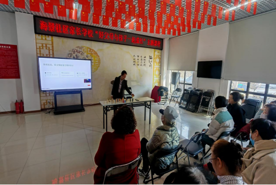 为进一步加强家庭教育指导,破解家长育儿困惑,营造和谐融洽的亲子关系,引导家长树立科学育儿理念。近日,海景社区家长学校邀请专业心理健康指导师刘子玉老师,精心开展“父母与孩子一起成长”主题教育活动,吸引了辖区数十名家长的积极参与,让科学育儿理念浸润千家万户,让亲子陪伴更有温度。