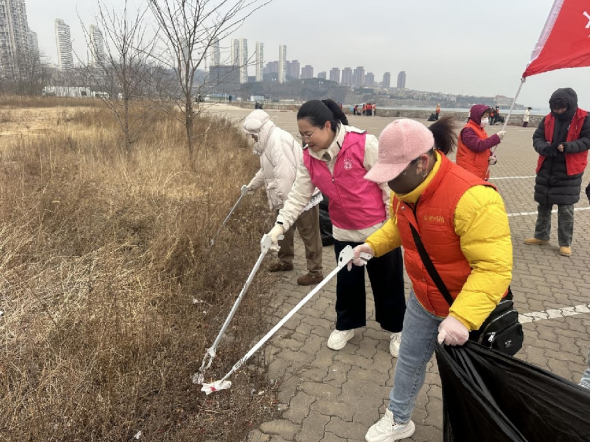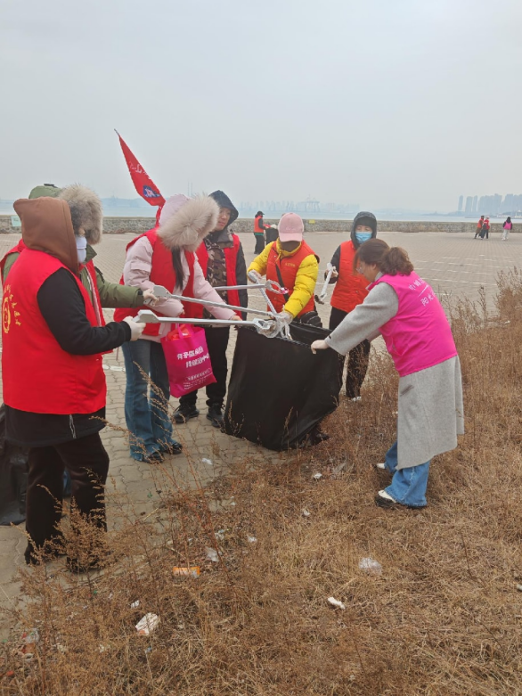 此次活动响应街道学雷锋工作号召,采用 “社区 + 海边” 多点联动模式。活动前期,社区不仅明确清理区域、备齐垃圾夹、分类垃圾袋、扫帚、铁铲等清洁工具,还专门开展了简短的垃圾分类岗前培训,向参与人员讲解可回收物、厨余垃圾、有害垃圾、其他垃圾的分类标准,重点普及塑料瓶、废旧渔网、电池等常见垃圾的正确分类方法,确保活动既清环境,又传知识,有序高效推进。三月初春,阳光和煦,身着红马甲的志愿者们精神抖擞、热情似火,在社区集合后,分赴小区各个角落及海边区域,一场 “清洁 + 分类” 的热火朝天环境清理行动正式拉开序幕。