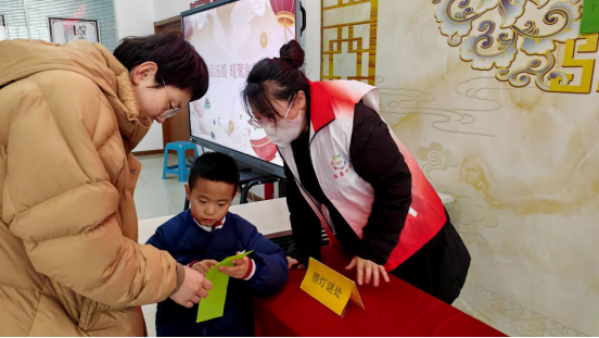 活动现场暖意融融,五彩斑斓的灯谜纸条整齐排列,随风轻摆,成为一道靓丽的节日风景线。灯谜内容丰富多样、趣味十足,涵盖民俗常识、成语典故、生活小知识、廉政文化等多个类别,难易适中,兼顾老中青不同年龄段居民的参与需求。活动一开始,居民们便纷纷驻足灯谜区,或独自凝神思索,或三五成群轻声探讨,你一言我一语,互相提示、彼此启发,热闹非凡。“这个灯谜我知道答案!”“我猜出来了,去哪里兑换礼品?”猜中谜底的居民脸上洋溢着喜悦的笑容,拿着谜底到兑换区领取精心准备的小礼品,现场欢声笑语不断,充分展现了大家参与民俗活动的热情。