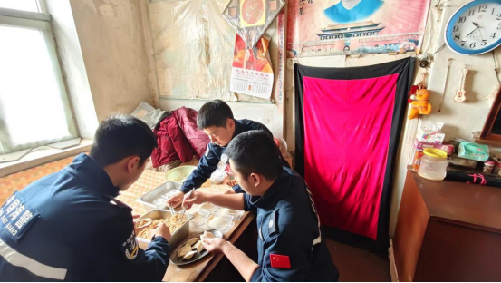 不一会儿,热气腾腾的饺子端上桌,屋里暖意融融,窗明几净,老人在浓浓的节日氛围中感受到来自军地的深情厚谊。